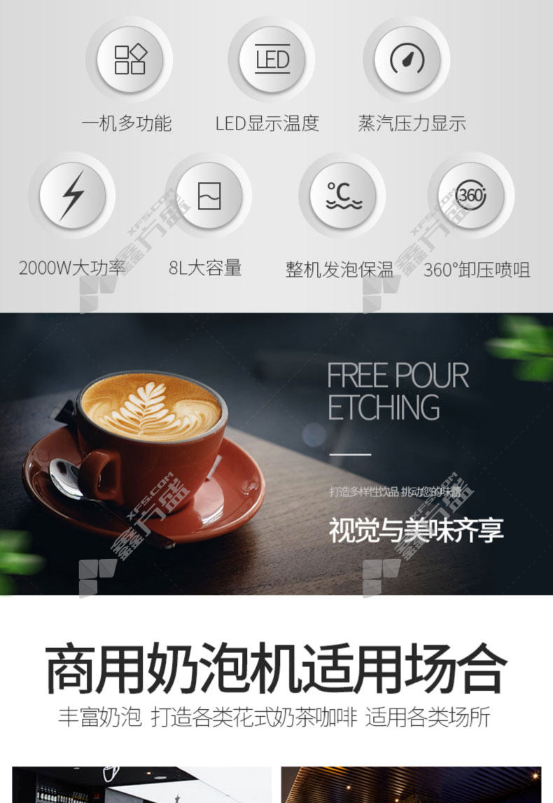 乐创 全自动蒸汽奶泡机银色款LC-SK-8B