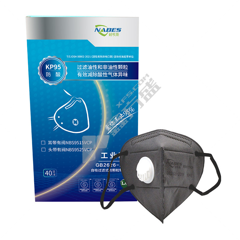 耐呗斯 折叠耳带式有呼吸阀KP95防酸口罩 40只装