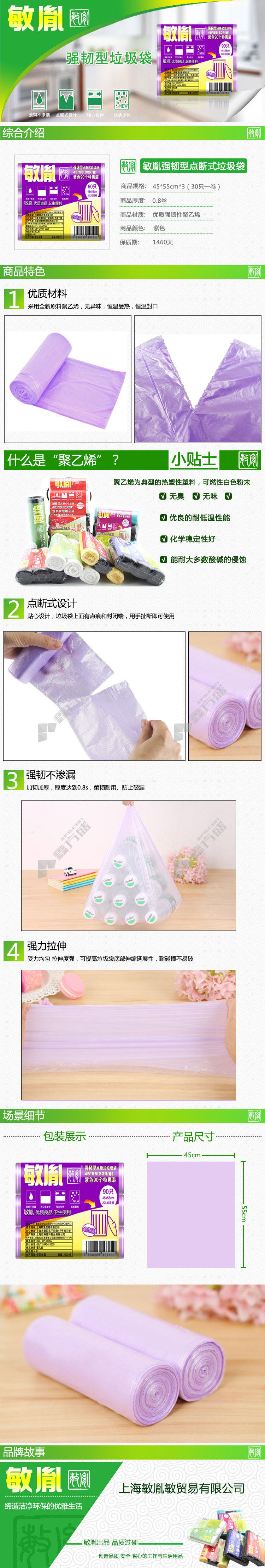 敏胤 MYL-4555-7 强韧型点断式垃圾袋