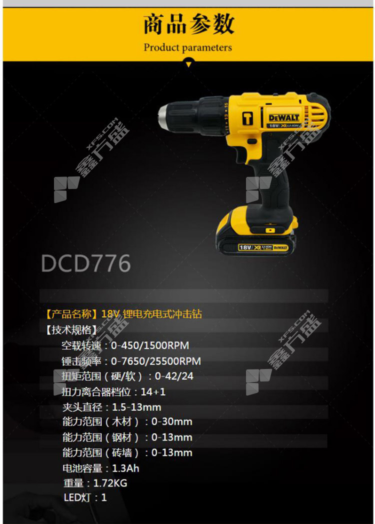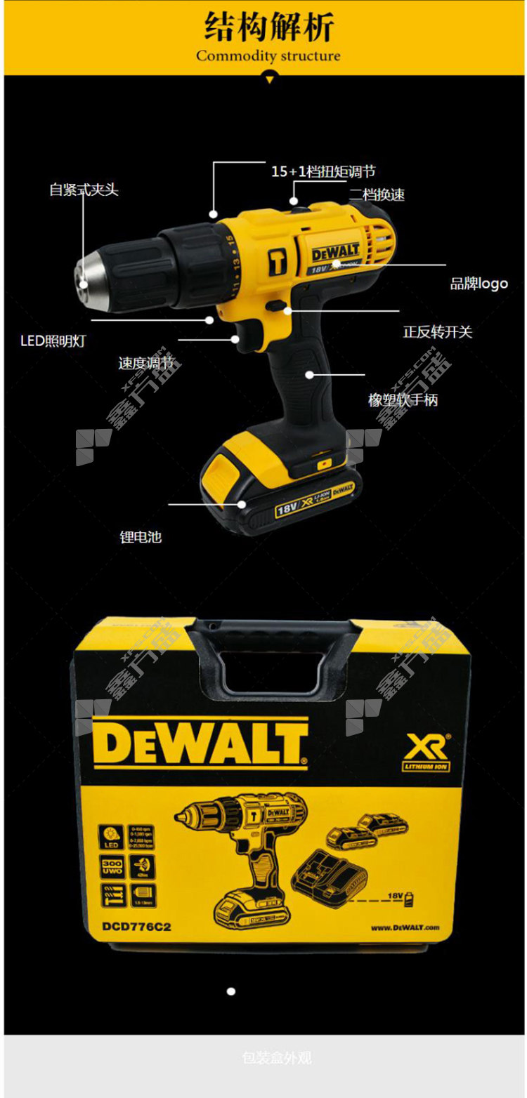 得伟DEWALT 经济型锂电充电式冲击钻DCD776C2A-A9