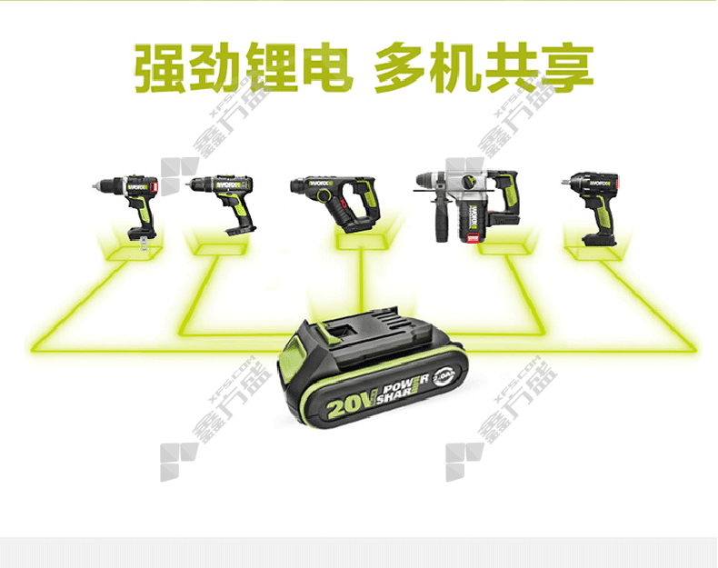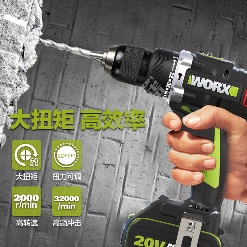 威克士Worx V锂电无刷双速冲击钻 WU189.2-13mm(2.1Ah,双电)-20V