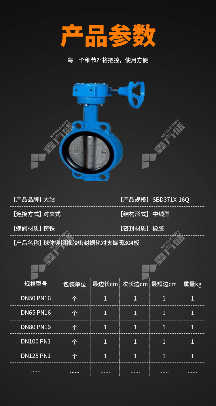 Dazhan ball locking rubber seal worm gear wafer butterfly valve 304 plate SBD371X16Q