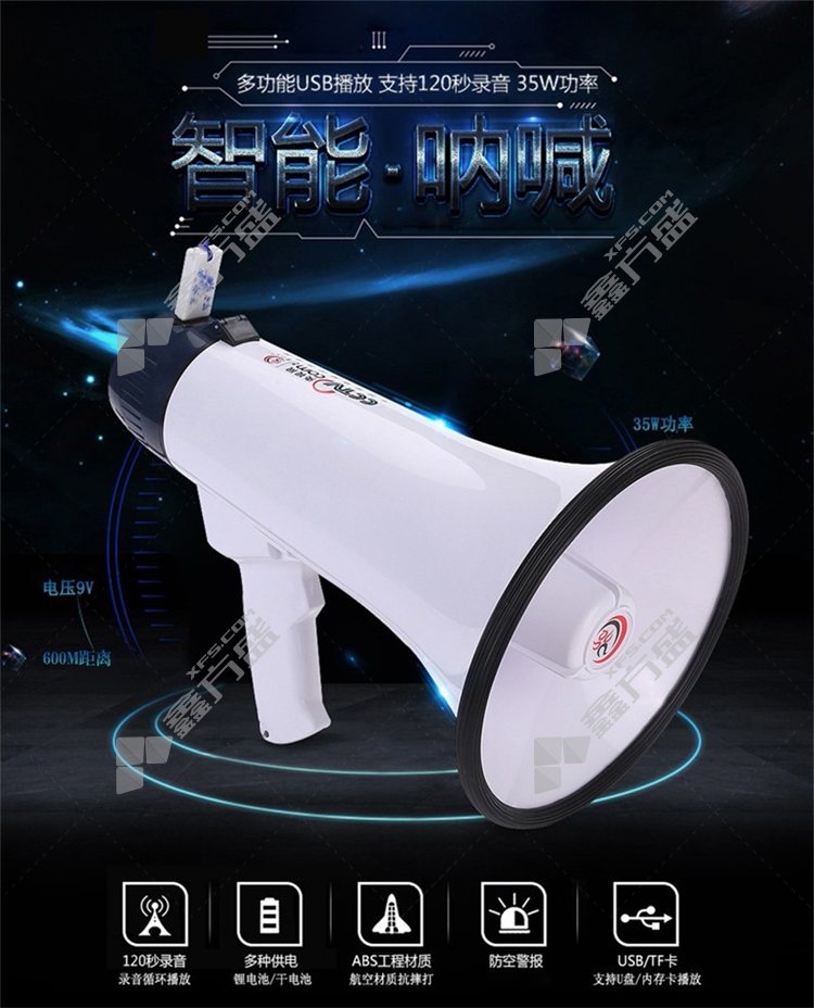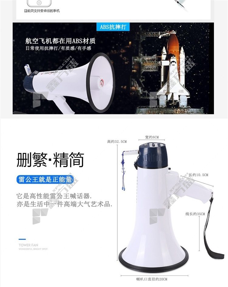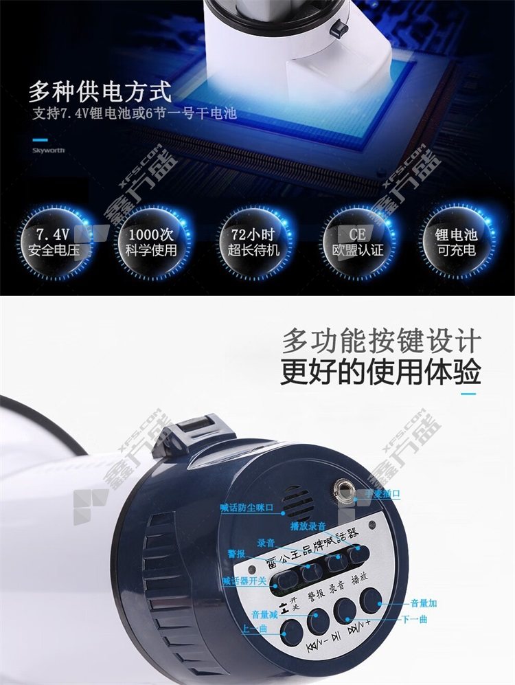 雷公王 CR-77标配1500毫安锂电池黑白喊话器