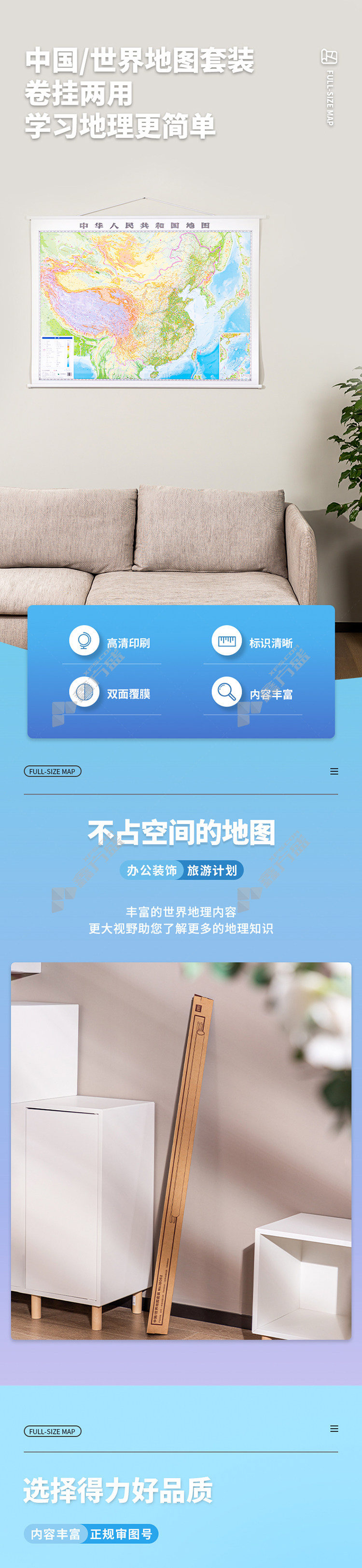 得力deli 18062中国 世界地图套装